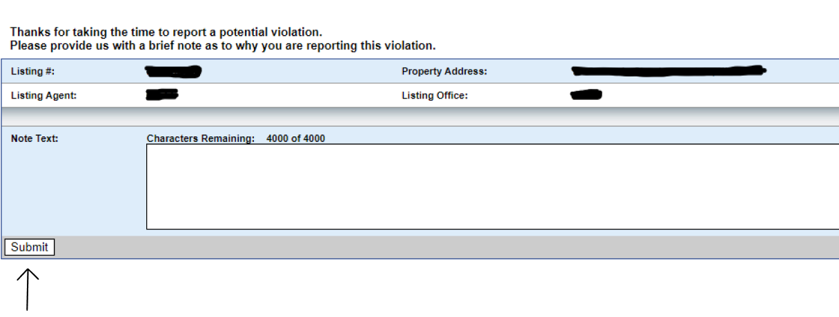 3. Please indicate the specific violation, and provide the correct information. If it's applicable, please make sure to include the source (i.e., tax records) in your report. Your submission will be linked to the listing for audit purposes. Upon receipt of your report, our MLS Compliance Team will handle the matter accordingly.